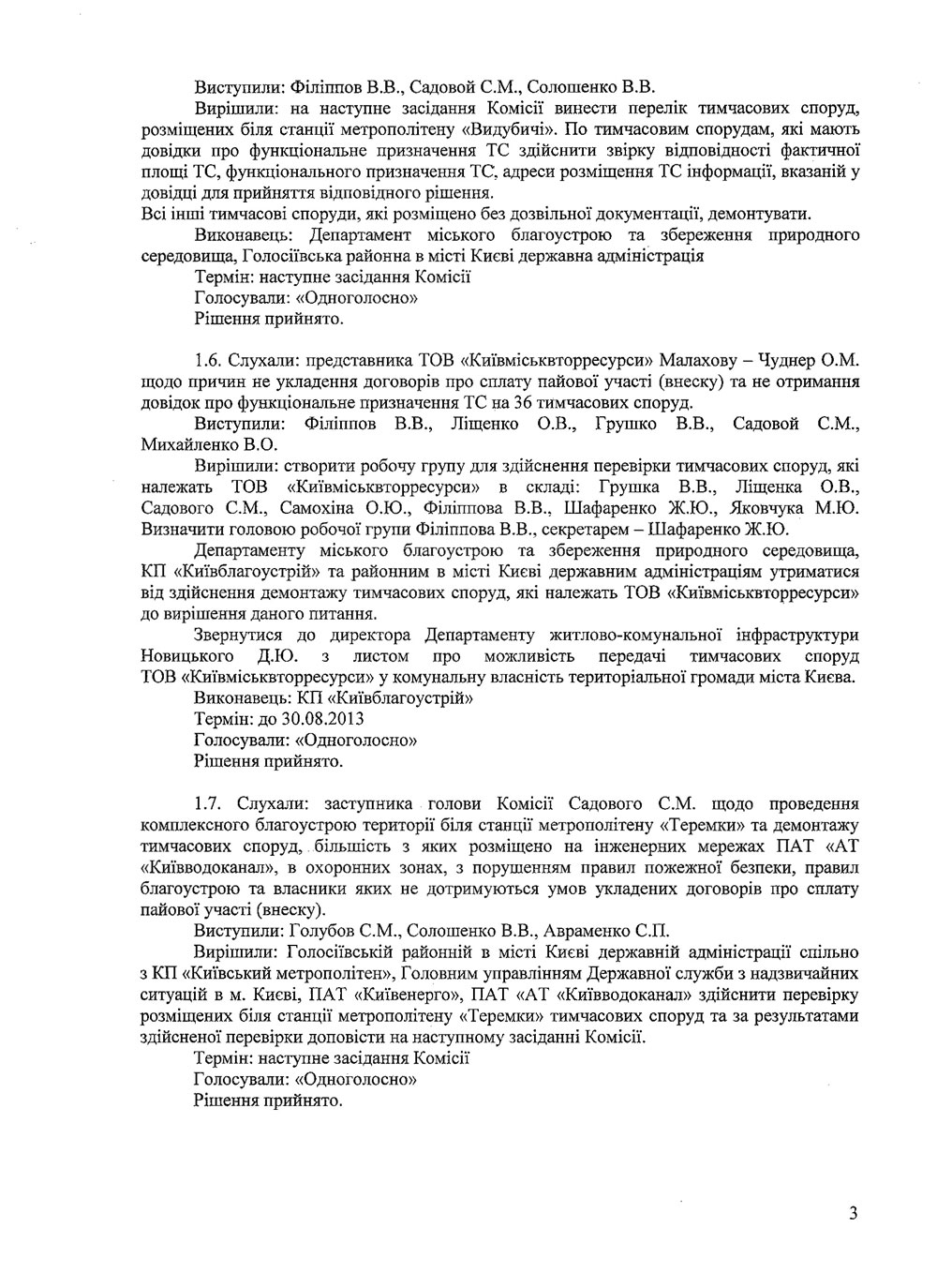 До Вашої уваги протоколи засідань Комісії з питань впорядкування, розміщення та демонтажу тимчасових споруд на території міста Києва.