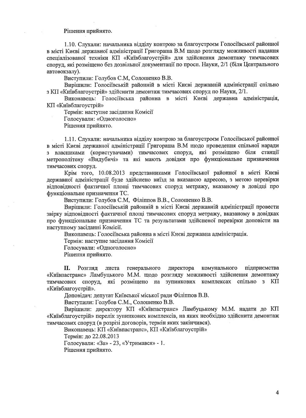 До Вашої уваги протоколи засідань Комісії з питань впорядкування, розміщення та демонтажу тимчасових споруд на території міста Києва.