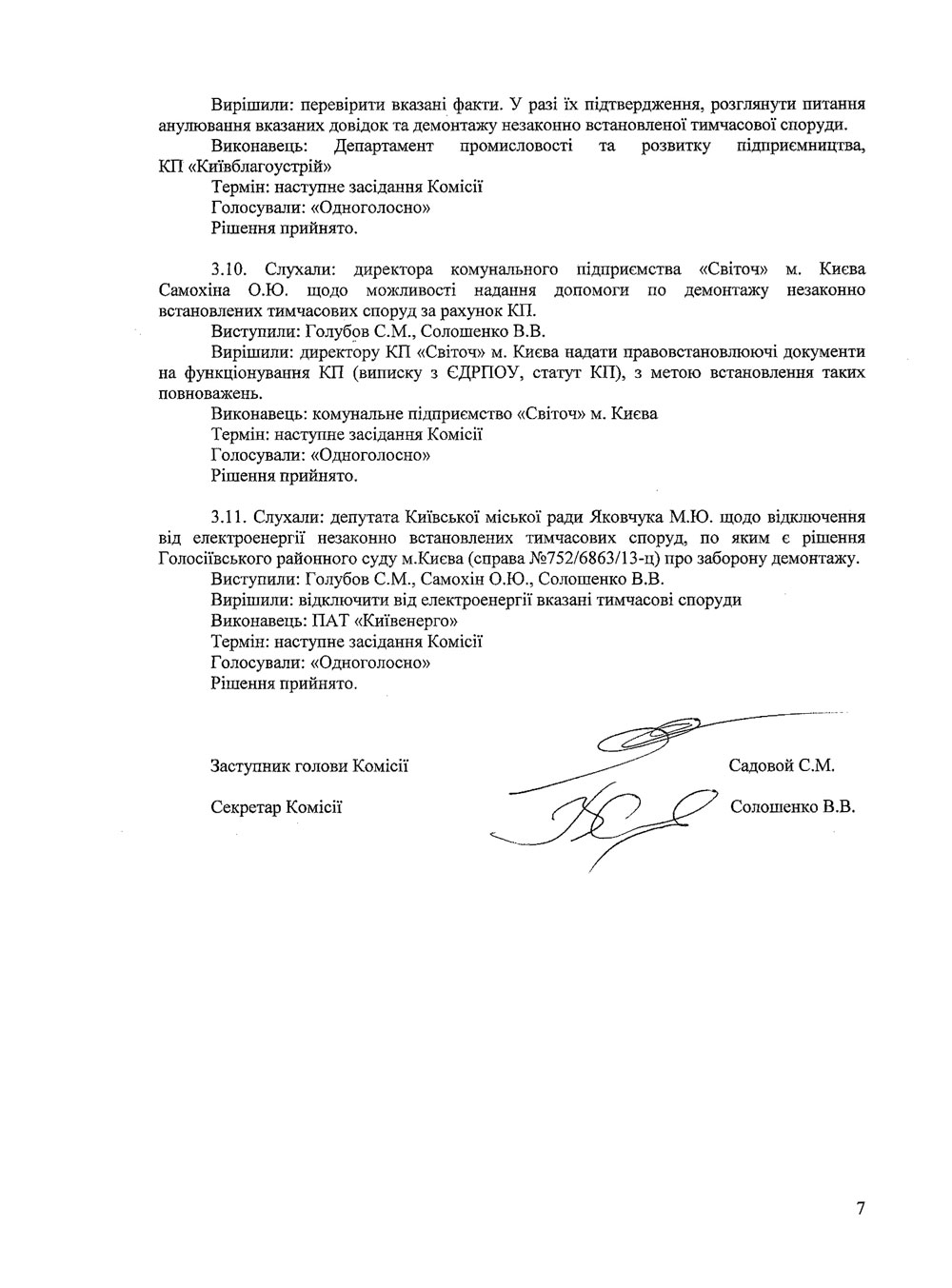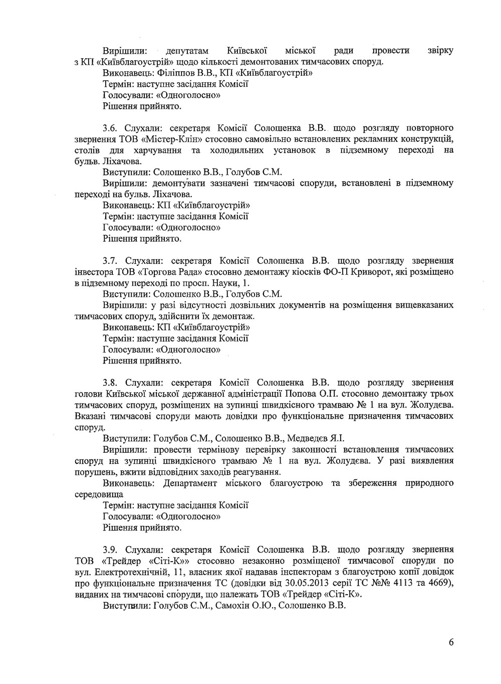 До Вашої уваги протоколи засідань Комісії з питань впорядкування, розміщення та демонтажу тимчасових споруд на території міста Києва.